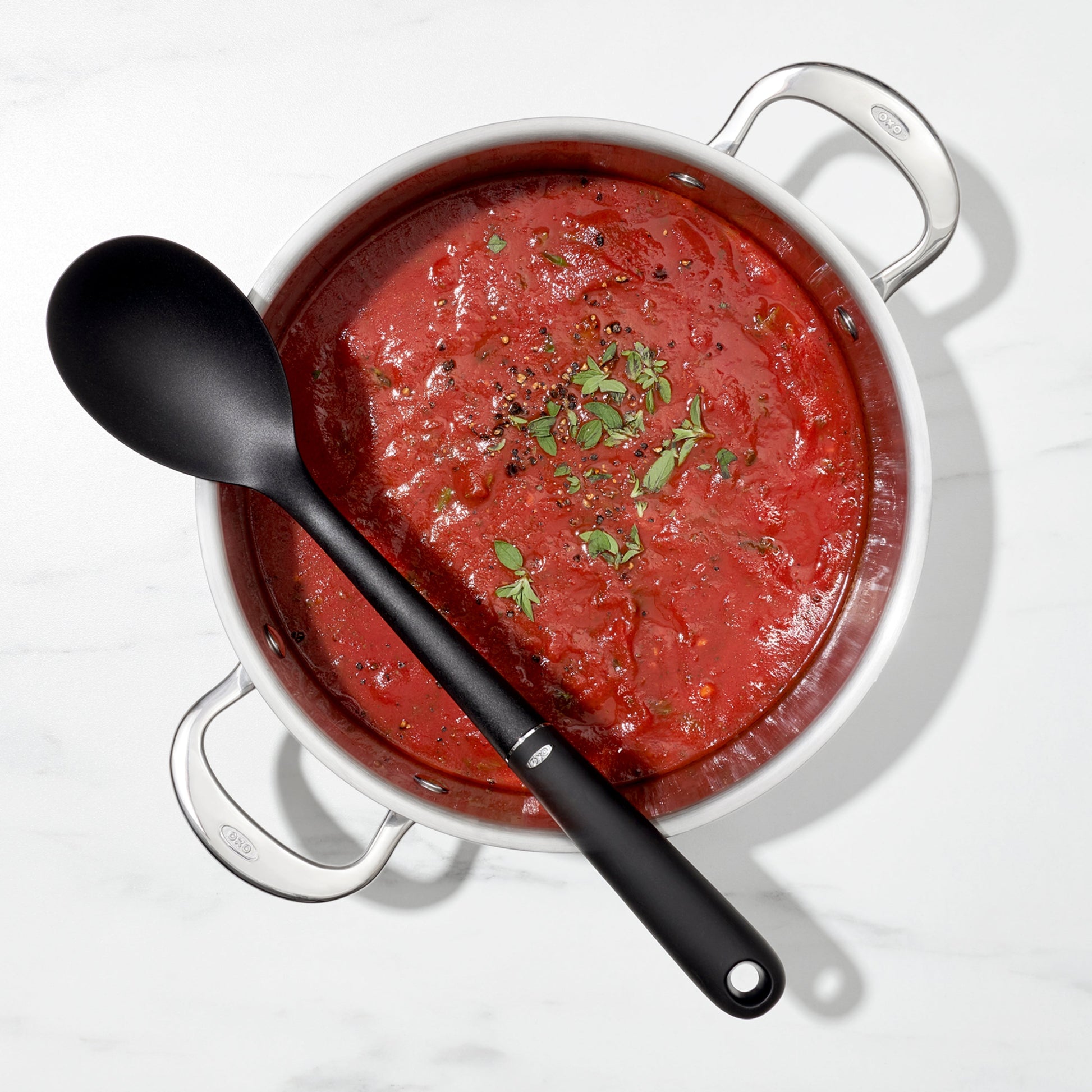Η κουτάλα OXO είναι το κατάλληλο εργαλείο για να ανακατεύετε σούπες, σάλτσες και μαγειρευτά. Κατασκευασμένο για ανθεκτικότητα, είναι ανθεκτικό στη θερμότητα και ασφαλές για αντικολλητικά σκεύη. Η αντιολισθητική λαβή παρέχει ασφαλές, άνετο κράτημα. Πλένεται στο πλυντήριο πιάτων.