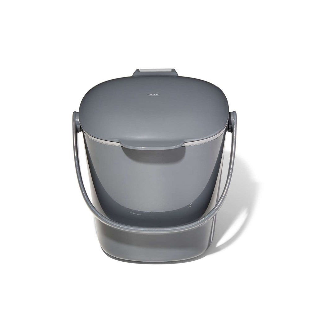 Ιδιαίτερα βολικός κάδος απορριμάτων OXO σε ανθρακί χρώμα για γρήγορο καθάρισμα ενώ μαγειρεύετε. Διαθέτει αποσπώμενο κάδο για εύκολο καθαρισμό και χειρολαβή για εύκολη μεταφορά. Ο εσωτερικός κάδος είναι αφαιρούμενος και κατάλληλος για πλυντήριο πιάτων.
