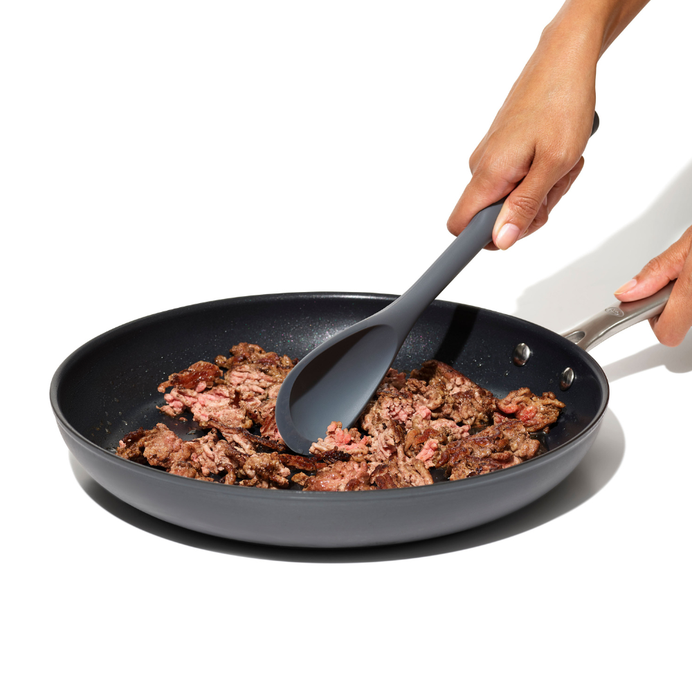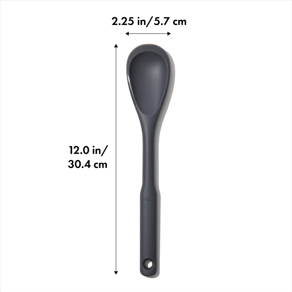 Το κουτάλι σιλικόνης OXO είναι το τέλειο εργαλείο για να ανακατεύετε, να σερβίρετε και να δοκιμάσετε όλα τα αγαπημένα σας comfort food. Το στρογγυλεμένο σχήμα του ταιριάζει τέλεια στις καμπύλες των κατσαρολών και των τηγανιών. Η ανθεκτική στη θερμότητα σιλικόνη σας επιτρέπει να εργάζεστε απευθείας σε υψηλή θερμοκρασία. Οι εύκαμπτες άκρες του κουταλιού γλιστρούν πάνω στα αντικολλητικά σκεύη χωρίς γρατσουνιές. Η μαλακή, αντιολισθητική λαβή παραμένει άνετη στο χέρι, ανεξάρτητα από το πόσο καιρό χρειάζεται να ανακατεύετε αυτή τη σάλτσα. Πλένεται στο πλυντήριο πιάτων για γρήγορο καθάρισμα.