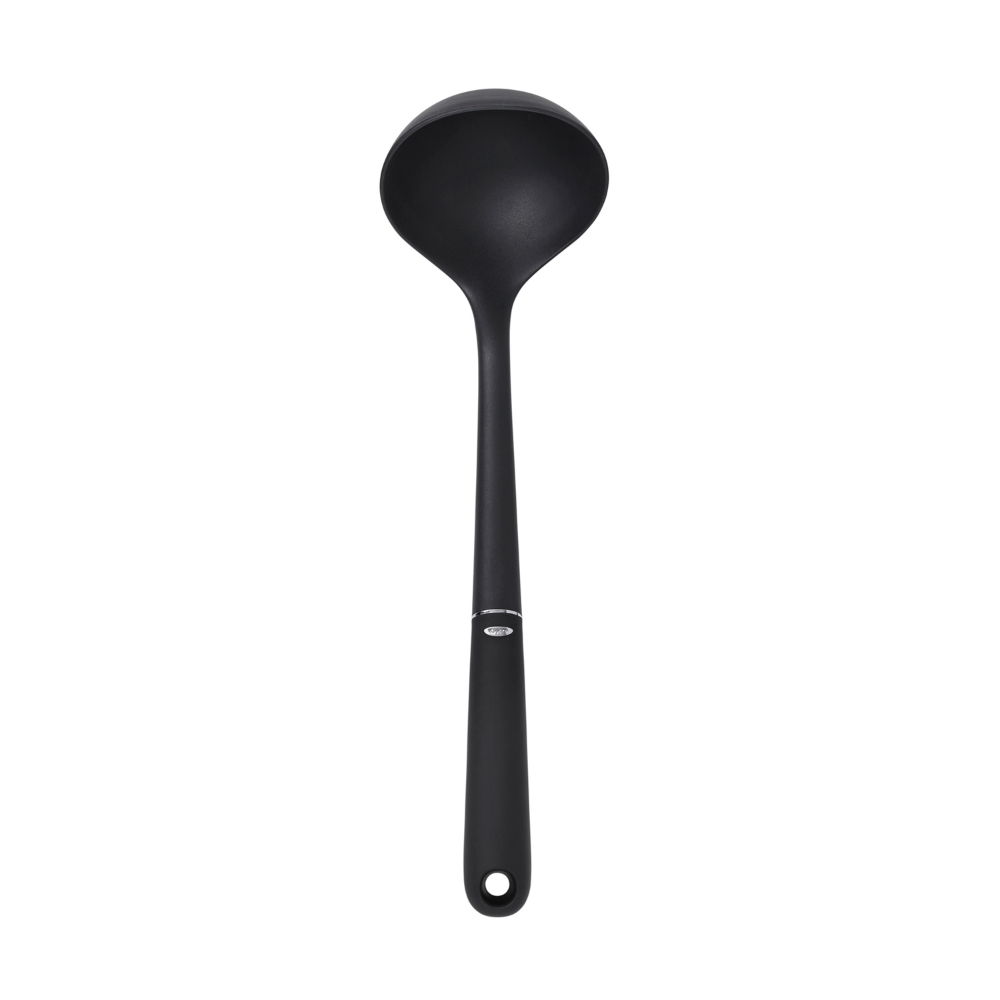 Η κουτάλα OXO είναι το κατάλληλο εργαλείο για να ανακατεύετε σούπες, σάλτσες και μαγειρευτά. Κατασκευασμένο για ανθεκτικότητα, είναι ανθεκτικό στη θερμότητα και ασφαλές για αντικολλητικά σκεύη. Η αντιολισθητική λαβή παρέχει ασφαλές, άνετο κράτημα. Πλένεται στο πλυντήριο πιάτων.