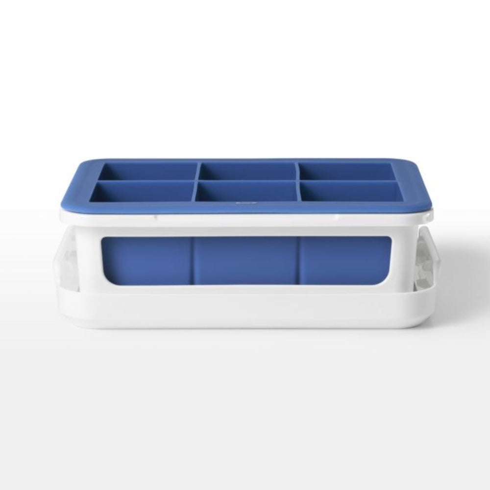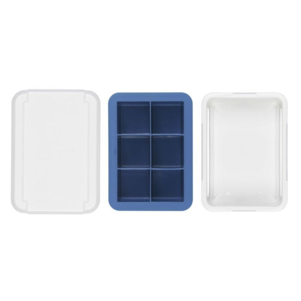 Παγοθήκη με έξι μεγάλες θέσεις. Η εύκαμπτη σιλικόνη επιτρέπει την εύκολη αφαίρεσή του πάγου. Διαθέτει συρόμενο καπάκι προστατεύοντας το πάγο από τις μυρωδιές του καταψύκτη.