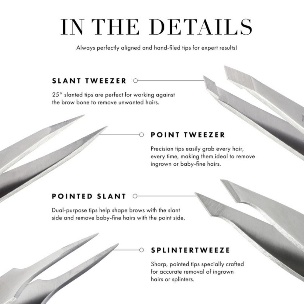 Το Point Tweezer μας διαθέτει λεπτές κωνικές μύτες, ιδανικές για την αφαίρεση λεπτών ή τριχών που έχουν μπει προς τα μέσα. Με το χέρι και τέλεια ευθυγραμμισμένες μυτερές άκρες αρπάζουν κάθε τρίχα, κάθε φορά.